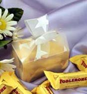 Silver Stars Bow Box with Honey and Almond Nougat Toblerone 30 pieces Mini Bars, makes adorable party gift.