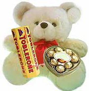 Bear w/ ChokExpress your longing for her across the miles. Let her feel how you feel about her even if you are far away. Send her Miss you "Beary" much bear, it will surely make her think of you across the miles. Includes a Super soft 9 " cuddly bear, 1 pack 6-50g Toblerone bars and a Ferrero Chocolate. |