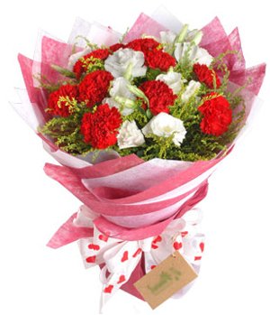 11 red carnations, solidago canadensis, gentiana or small white flowers decorated. Available for elders, birthday, get well and thank you.